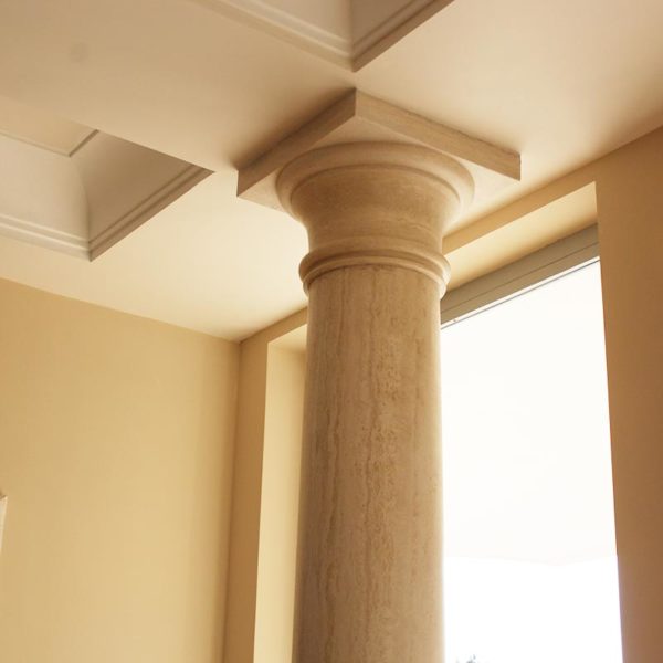 Dettaglio di una colonna in travertino romano massello, con capitello di ordine dorico : una forma semplice ed elegante.