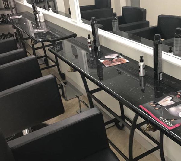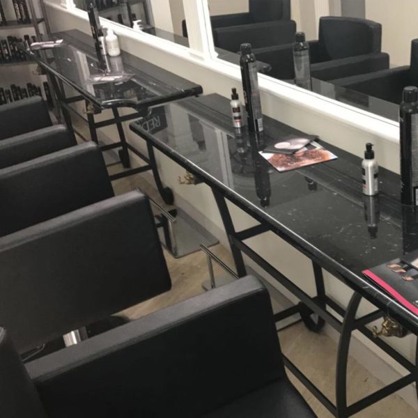 Ripiani in nero marquinia per un salon accogliente e all’avanguardia.